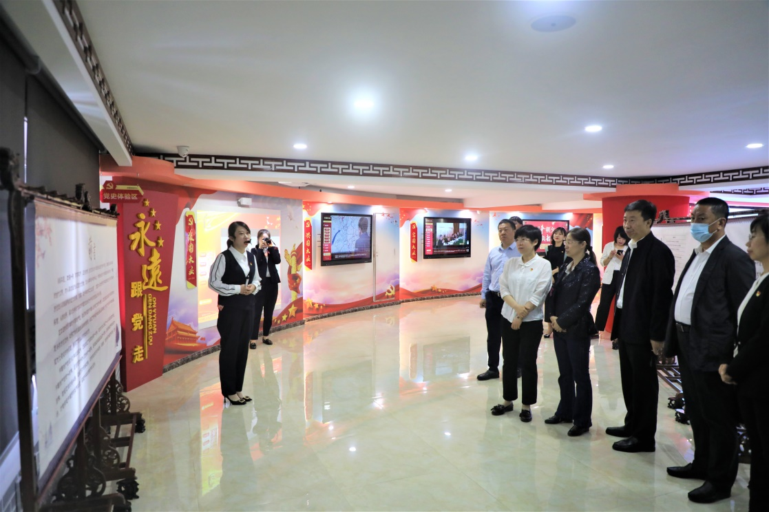 全体党员干部跟随讲解员的脚步,依次参观了“党史、党事、党视、党誓、党示”等五个体验区,通过“看、听、宣、演、做”为一体的创新学习方式,引领大家观看了中国共产党从新民主主义革命时期、社会主义革命时期、社会主义建设时期到中国特色社会主义新时代的发展史,回顾共产党从“救国、兴国”到“富国、强国”的百年光辉历程,使党员干部充分领略到党的“红色血脉”“红色基因”精神和真谛。