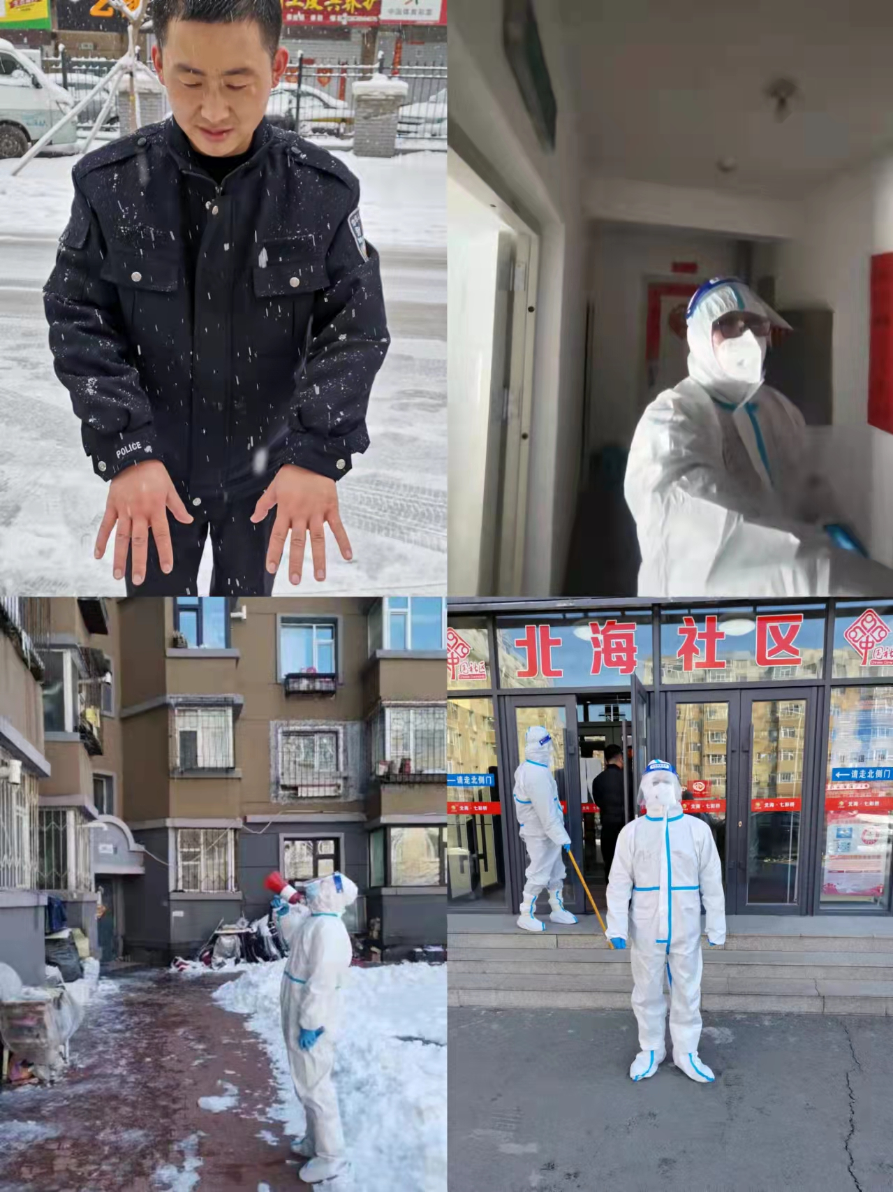 在社区工作期间,他们承担了维持秩序、答疑解惑、核酸检测等工作,并结合实际情况为老弱病孕开通绿色通道。3月12日晚长春突降暴雪,为保障核酸检测有序进行,侯刚和贾洸天刚亮就来到社区门口清理检测点内的积雪,在道路湿滑路面通铺地毯,防止前来检测的居民摔倒;同时因系统更换,悉心告知前来检测人员登录界面,针对老人、小孩等弱势群体,耐心的解答并帮助其操作系统,直至核酸检测完毕。高帅和张宁同志克服了老旧小区没有电梯、人流密集的困难,从不大声说话的他们,却拿着大喇叭在寒冬里嘶声呐喊。为了节省更换防护服的时间,四名志愿者基本上全天不吃不喝,在寒风中站立十几个小时维持秩序,汗水浸透的衣服晚上可以看到冰碴儿,却始终毫无怨言,截止目前已经协助社区进行了几万人次的核酸检测。珠海社区魏书记由衷的称赞他们:“你们展现了新时代年轻党员的奉献精神,如同你们的名字一样,“高风亮节”、“固本邦宁”、“守候平安”、“终见洸明”。