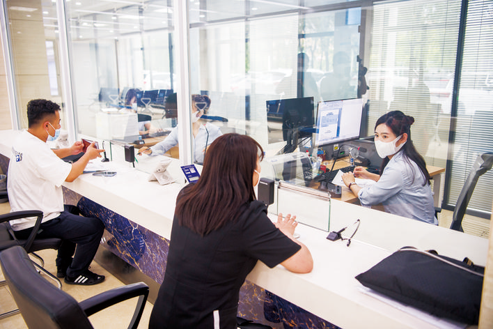 在九台区医保经办中心,办事窗口整洁有序,每个窗口前放置了签字笔,方便群众填写单据。同时,经办服务区设有智能取号机,电子显示屏供办事群众掌握等待人数,合理安排时间。整洁的休息等候区域放置了办事指南,供办事群众了解医保政策,熟悉业务流程。